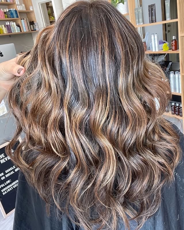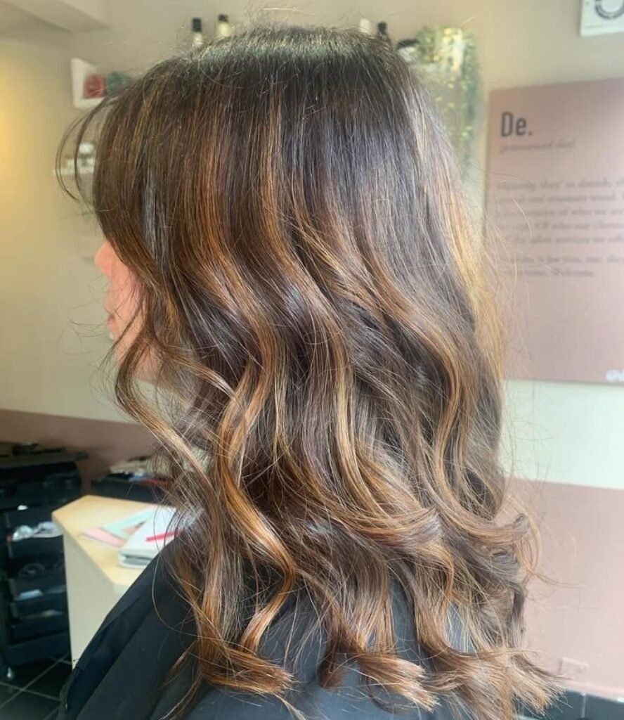 Balayage caramel highlights bring a natural, blended finish to brunette hair. Ideal for a low-maintenance yet stylish glow.