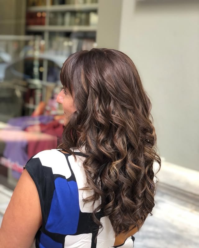 Caramel highlights give dark brown hair a fresh, everyday glow. A versatile style that’s easy to maintain and always trendy.