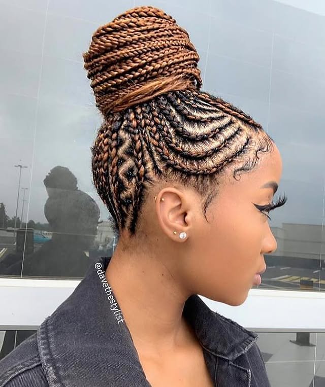 11. Cornrow Bun with Feed-In Braids