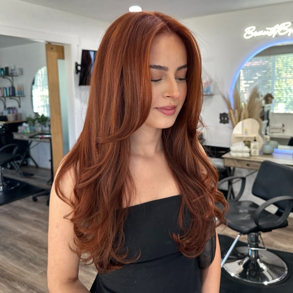 Get inspired by these gorgeous auburn copper hair shades that blend warmth and depth perfectly. A flawless choice for a natural, sun-kissed look.