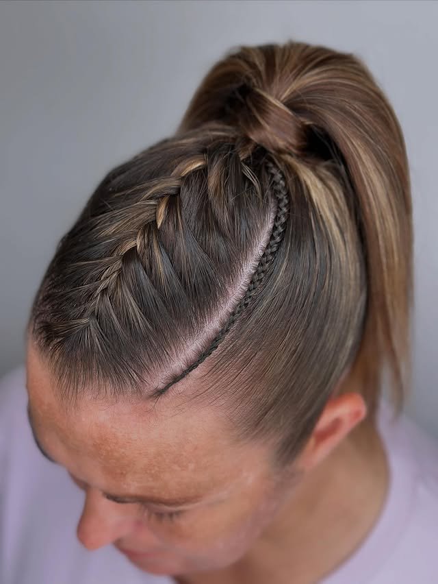 Pairing a ponytail with a French braid is chic and practical. It combines two classic styles into one modern look. Great for workouts, casual days, or even nights out.
