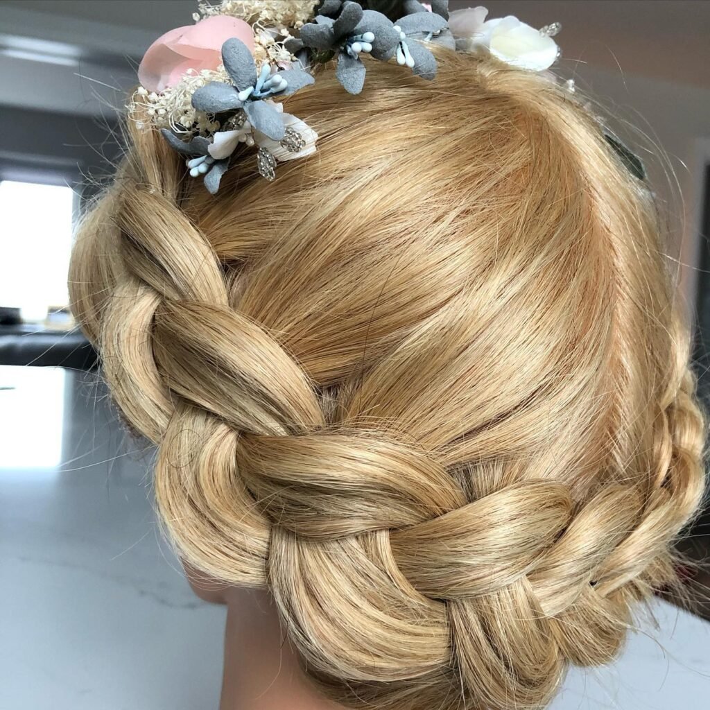 Add floral magic to your halo braid for a dreamy, romantic vibe. Whether it’s tiny blooms or bold petals, this look is perfect for spring, weddings, and photoshoots.