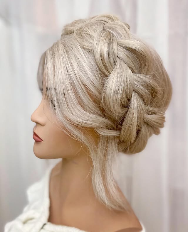 Say “I do” to the perfect bridal hairstyle — the halo braid. Romantic, graceful, and picture-perfect, it complements veils, flowers, and every dress style. A bride’s dream come true.