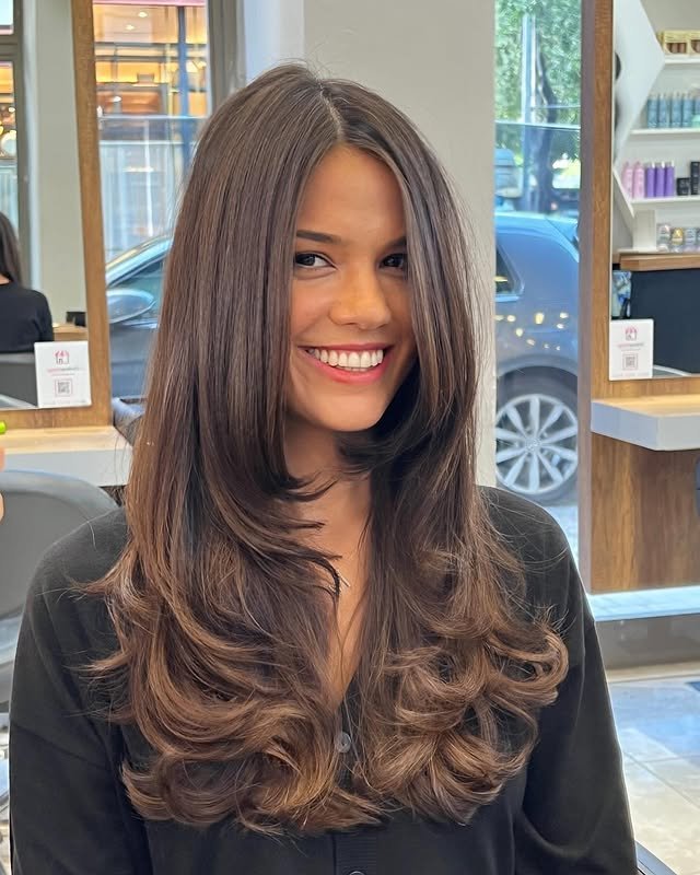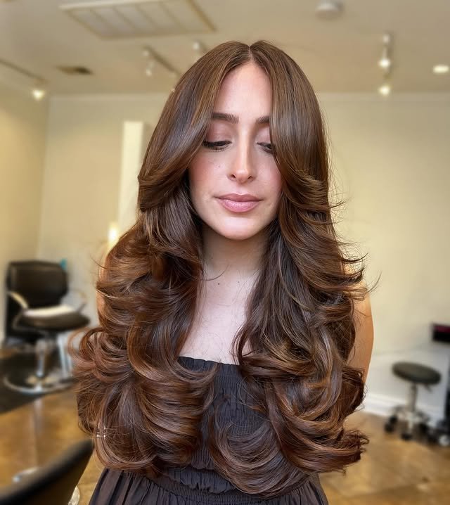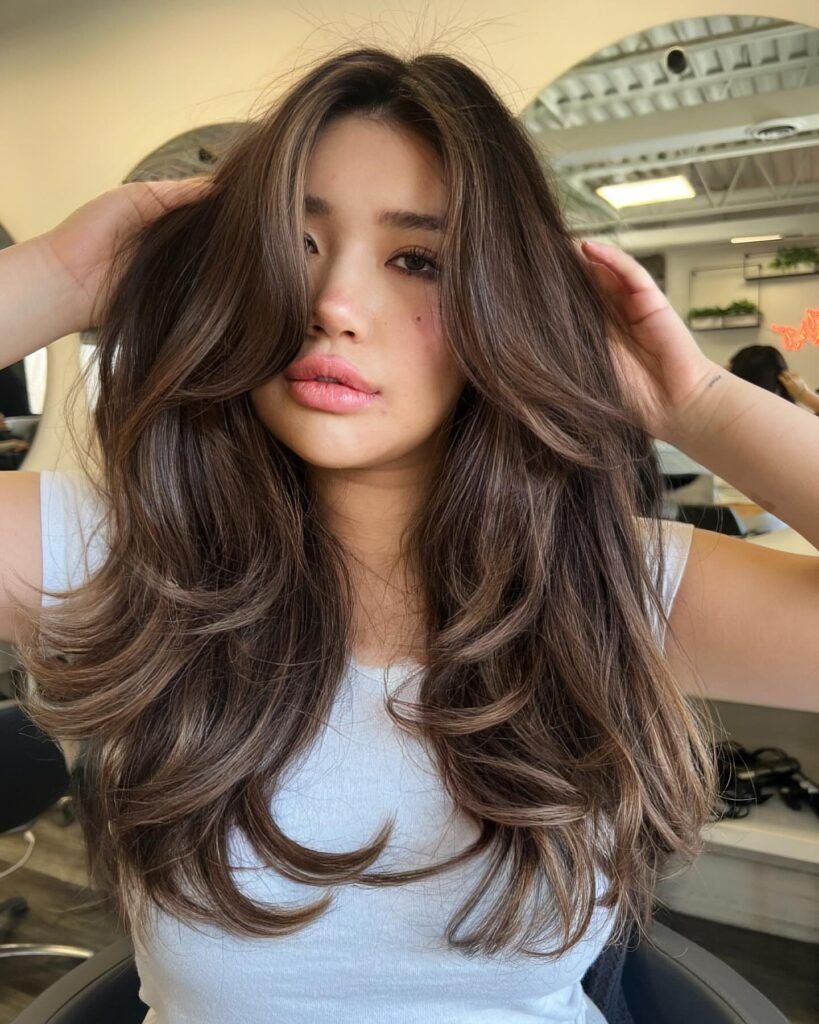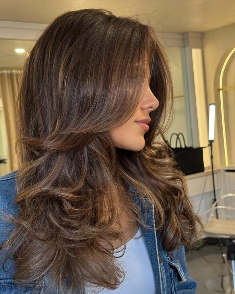 The kitty cut on long hair is the ultimate style for 2025! With soft layers and face-framing movement, it gives your locks a naturally chic look. Perfect for anyone wanting effortless volume and a fresh, modern vibe with brown hair.