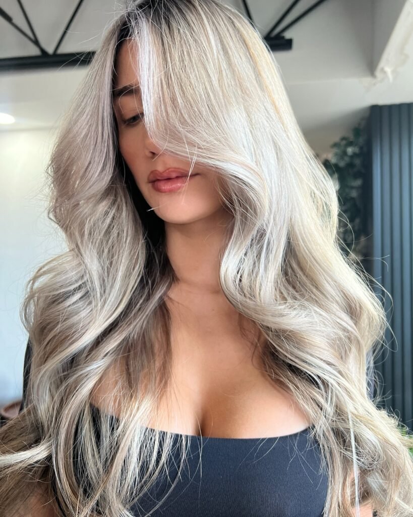 Dark roots paired with platinum blonde create contrast and depth. This style is edgy yet easy to maintain.