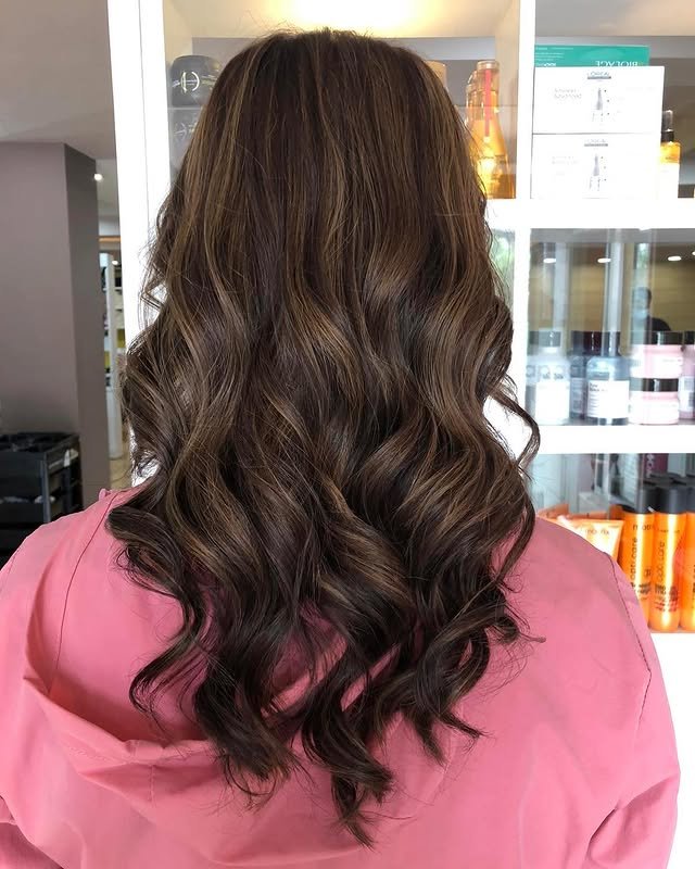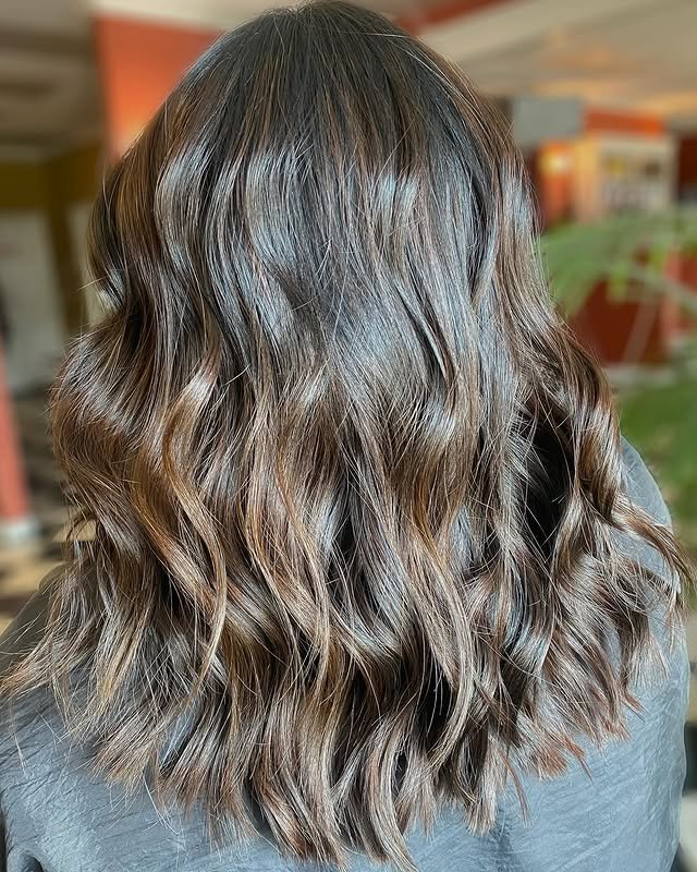 Waves bring out the best of brown hair with light brown highlights. The texture enhances the contrast between the two tones. It’s playful, stylish, and full of movement.