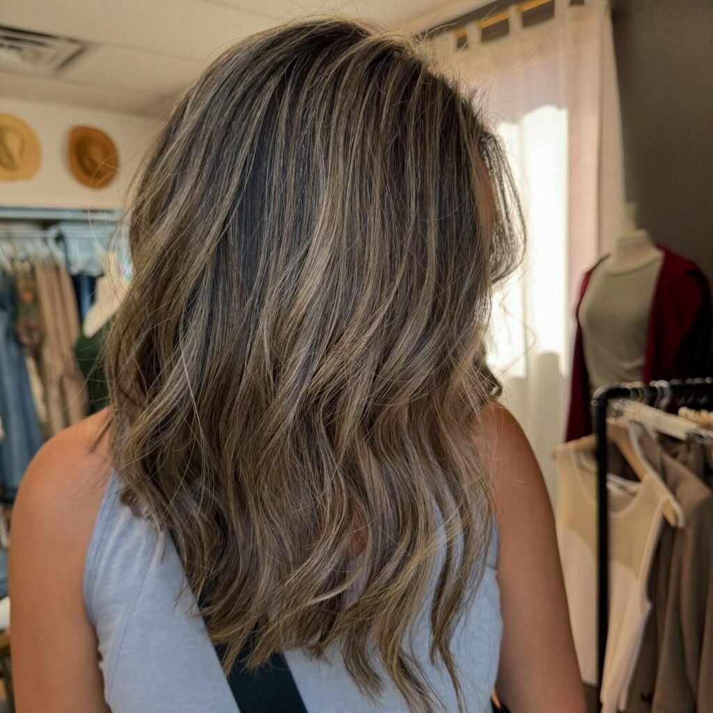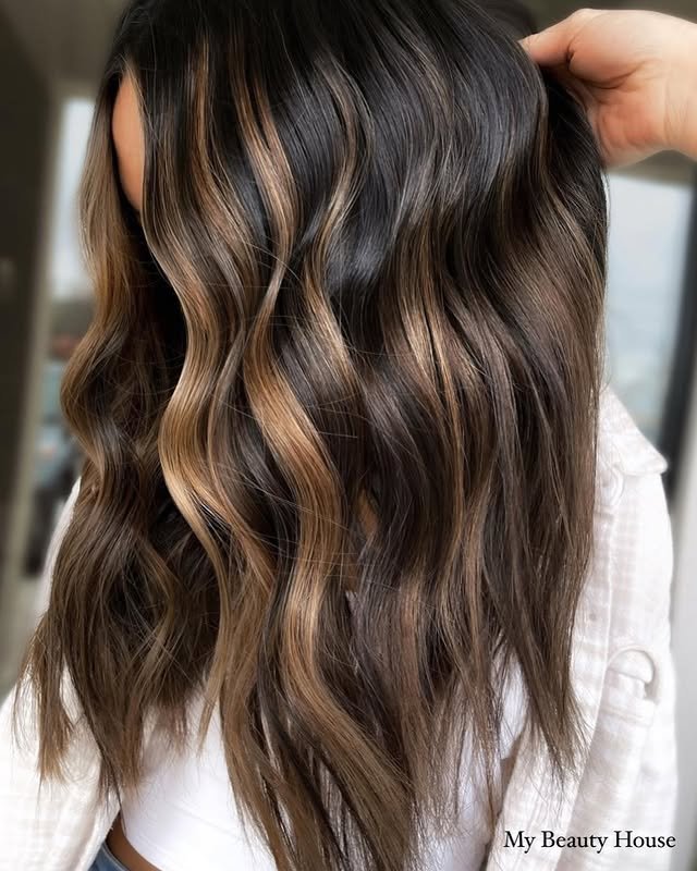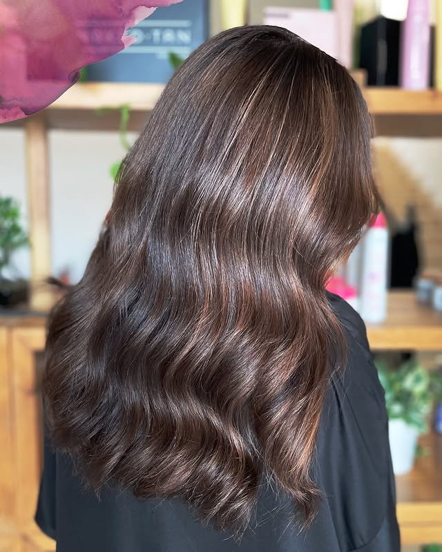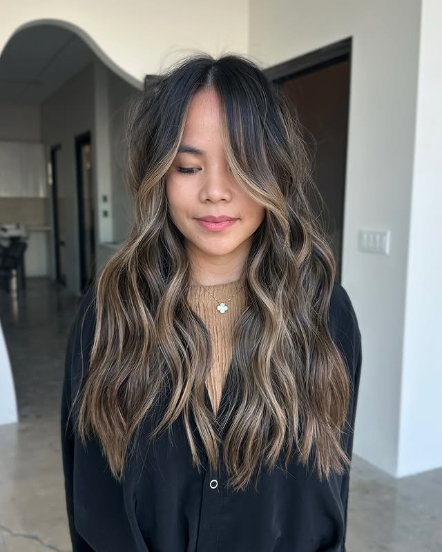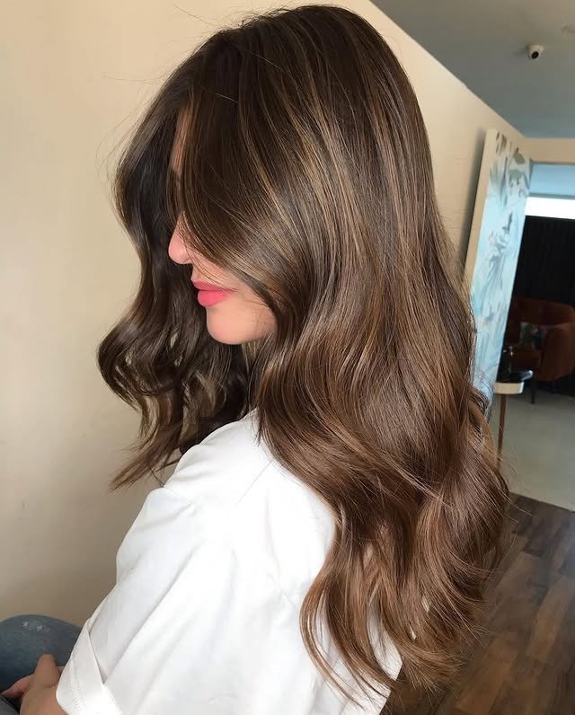 On long hair, light brown highlights create a flowing, radiant effect. The mix of tones adds depth and a sun-kissed finish. Perfect for those who want a chic yet natural transformation.