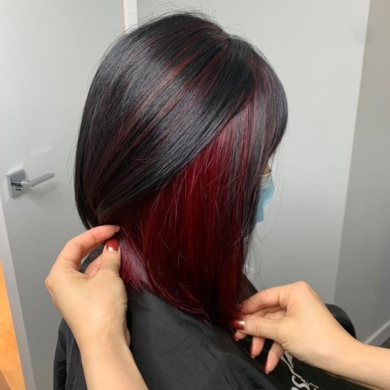 Red peekaboo highlights add a bold surprise beneath your natural hair color. The fiery tones peek through with movement, creating a fun and stylish effect. These gorgeous looks will inspire your next transformation.