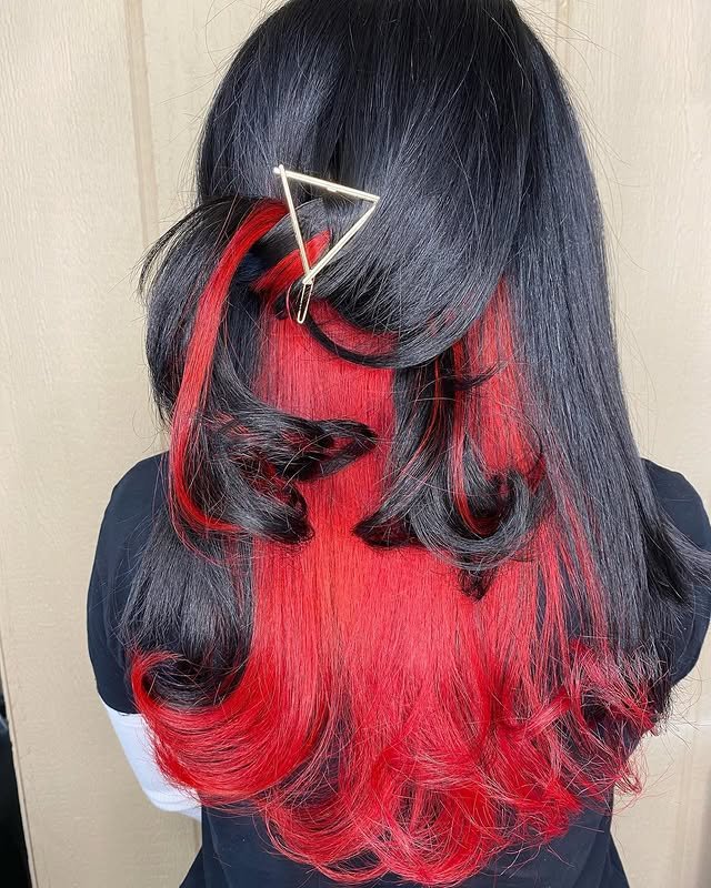 If you want a hairstyle that’s bold yet playful, red peekaboo hair is the perfect trend to try. This style hides vibrant red tones underneath your natural or base color, giving your hair a fun, hidden pop of color that peeks through when you move or style it. It’s a great way to experiment with red without going all-in, making it perfect for both subtle and daring looks.