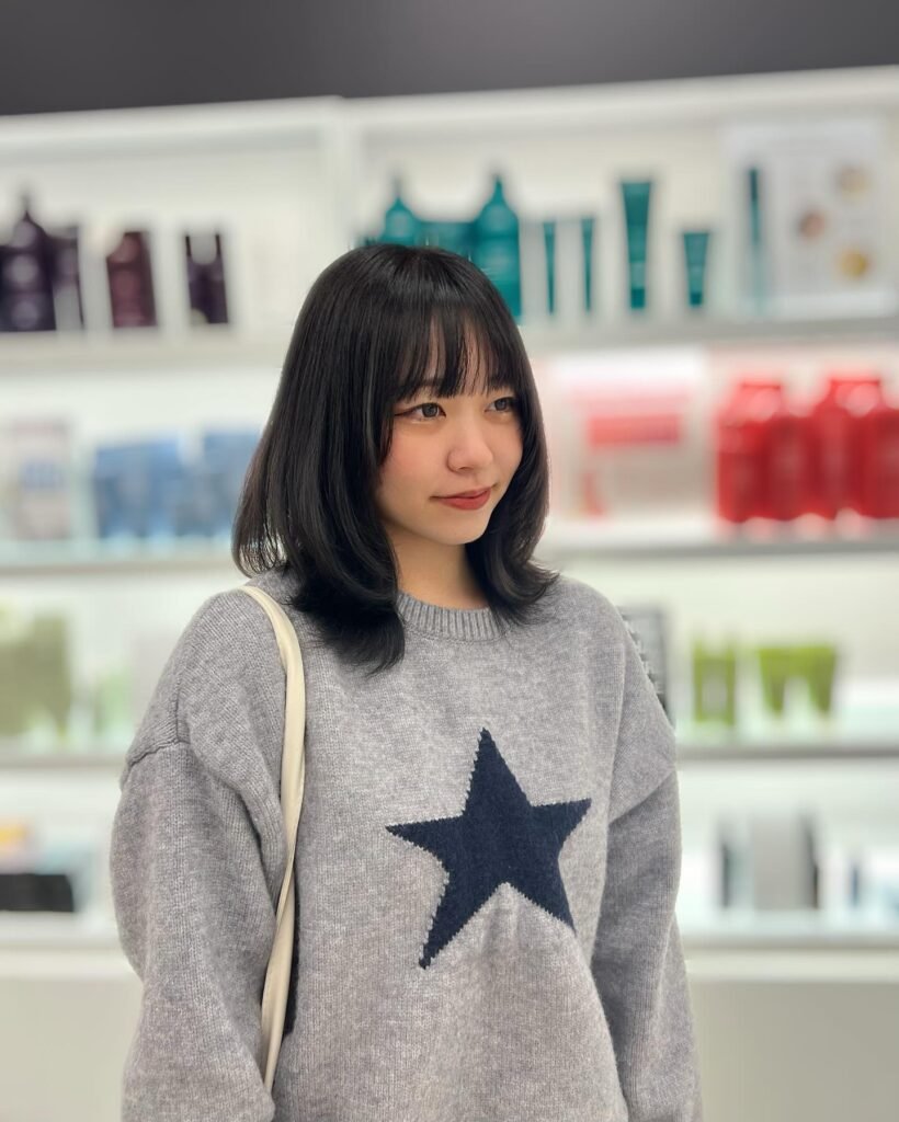 With its flowing curtain bangs and layered structure, this black wolf hair look blends softness with volume. The natural fall of the bangs gives it a flattering, face-framing effect.