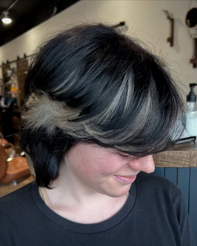 This short black wolf hairstyle is full of edgy razor-cut layers, adding dimension and lift at the crown. The shorter length keeps it fierce and easy to maintain.