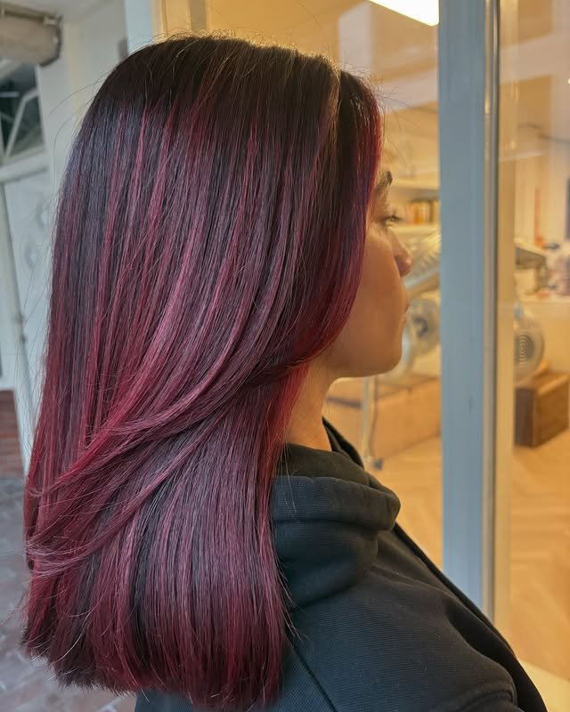 Adding cherry highlights brings a fun pop of color without overwhelming your base shade. It’s a playful way to brighten up your hairstyle.