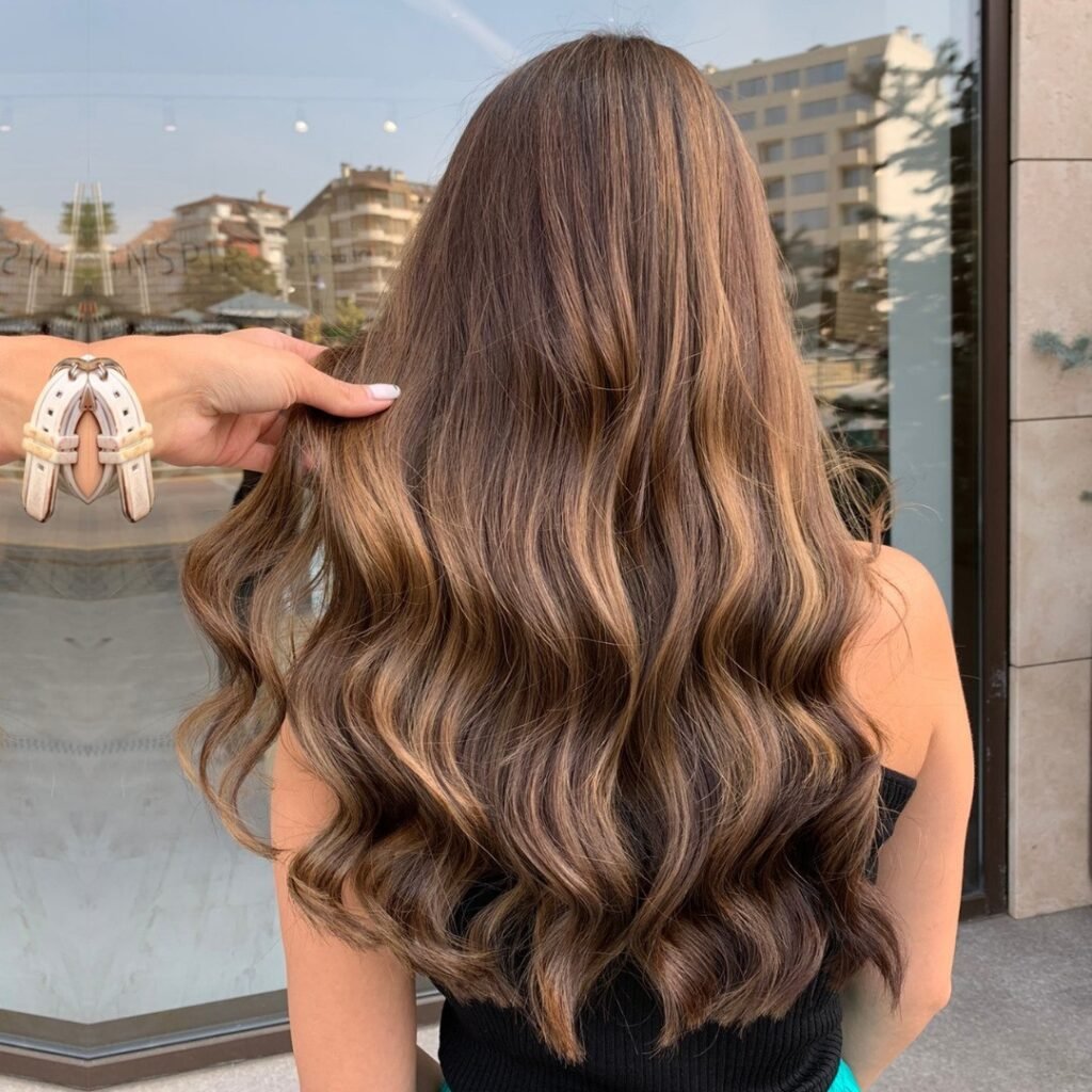 Balayage in chocolate brown and caramel adds seamless dimension. The hand-painted highlights look effortless and trendy. It’s a low-maintenance choice with high-fashion appeal.