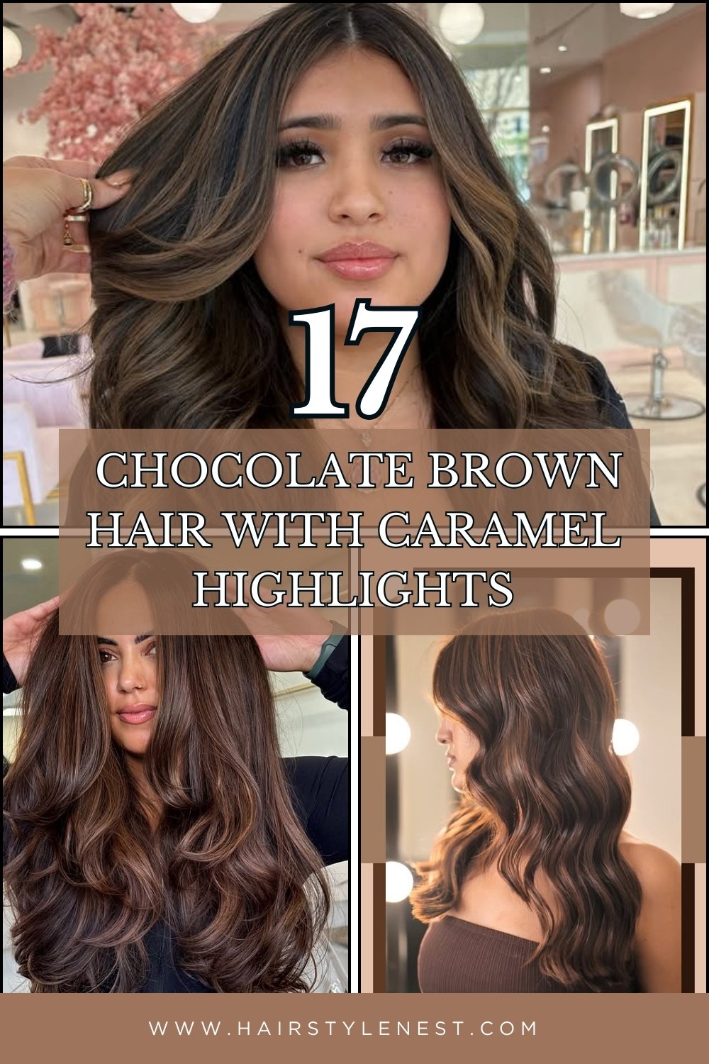 Chocolate brown hair looks even more radiant with soft caramel highlights. The warm tones create a natural sun-kissed effect. This style is perfect for adding brightness without losing depth.