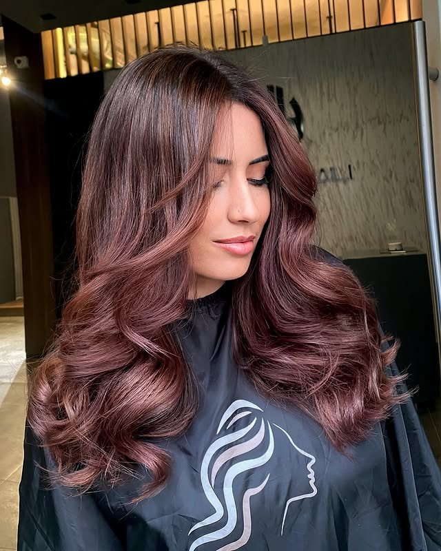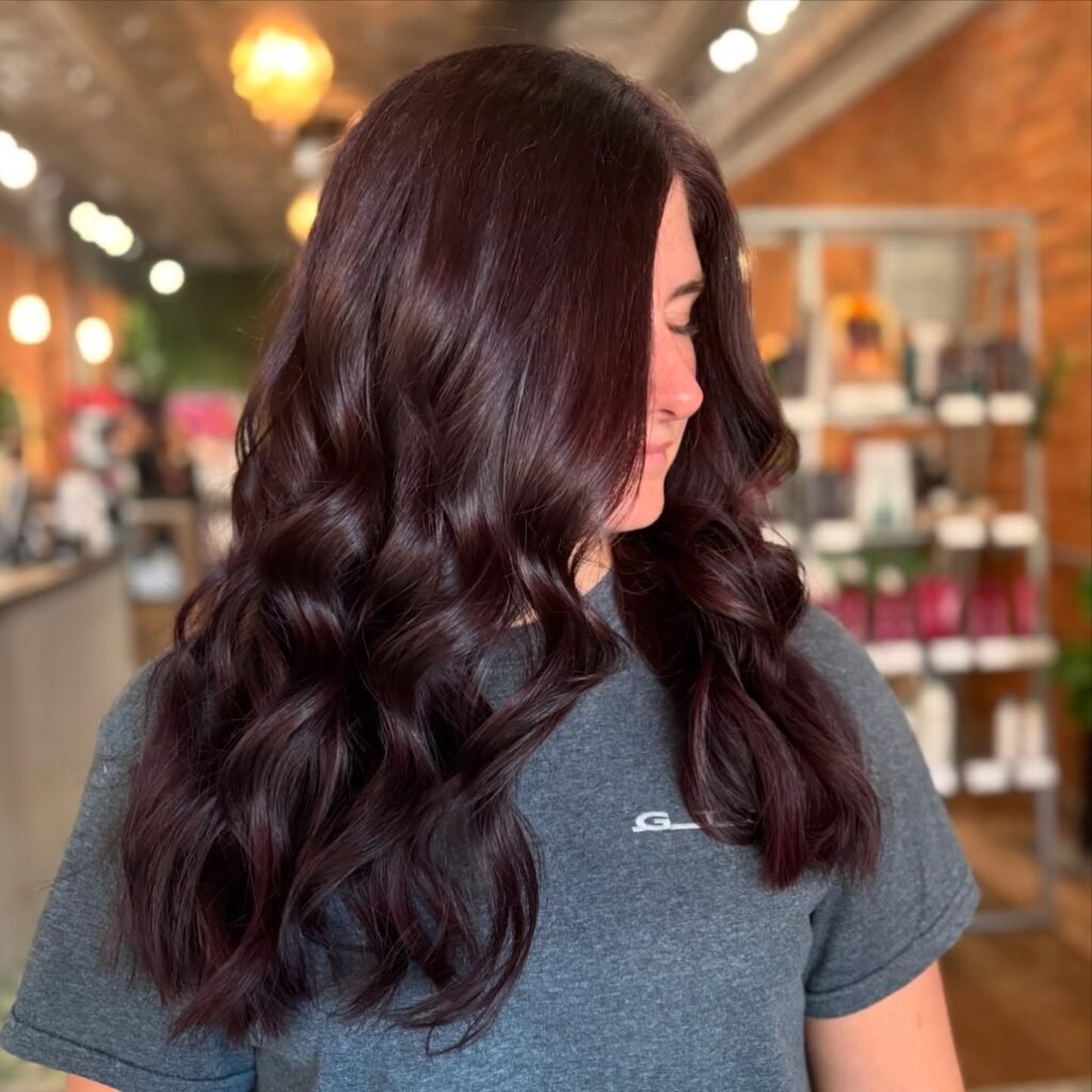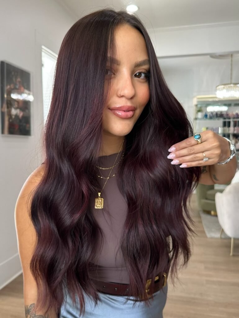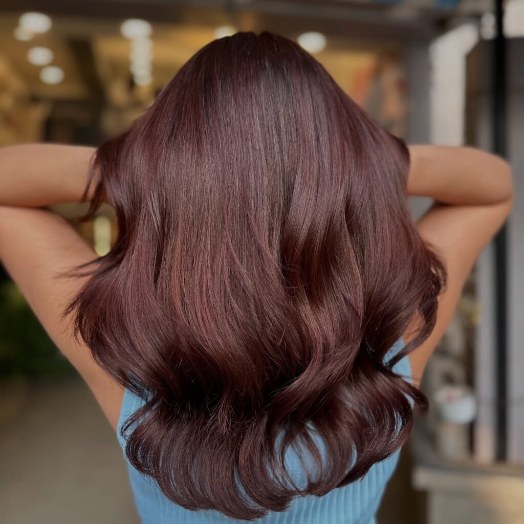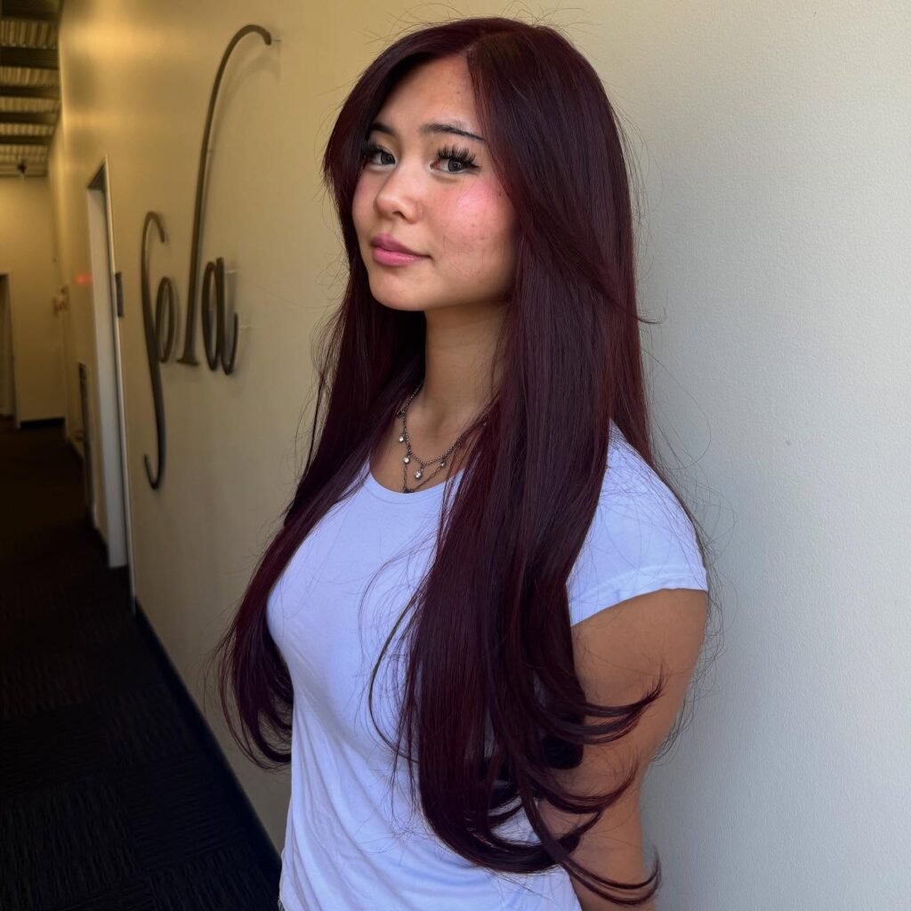 This color isn’t just trendy—it’s glamorous and refined. Its glossy tones bring a polished, luxurious vibe to your hair. These styles are perfect for a red-carpet-ready look.