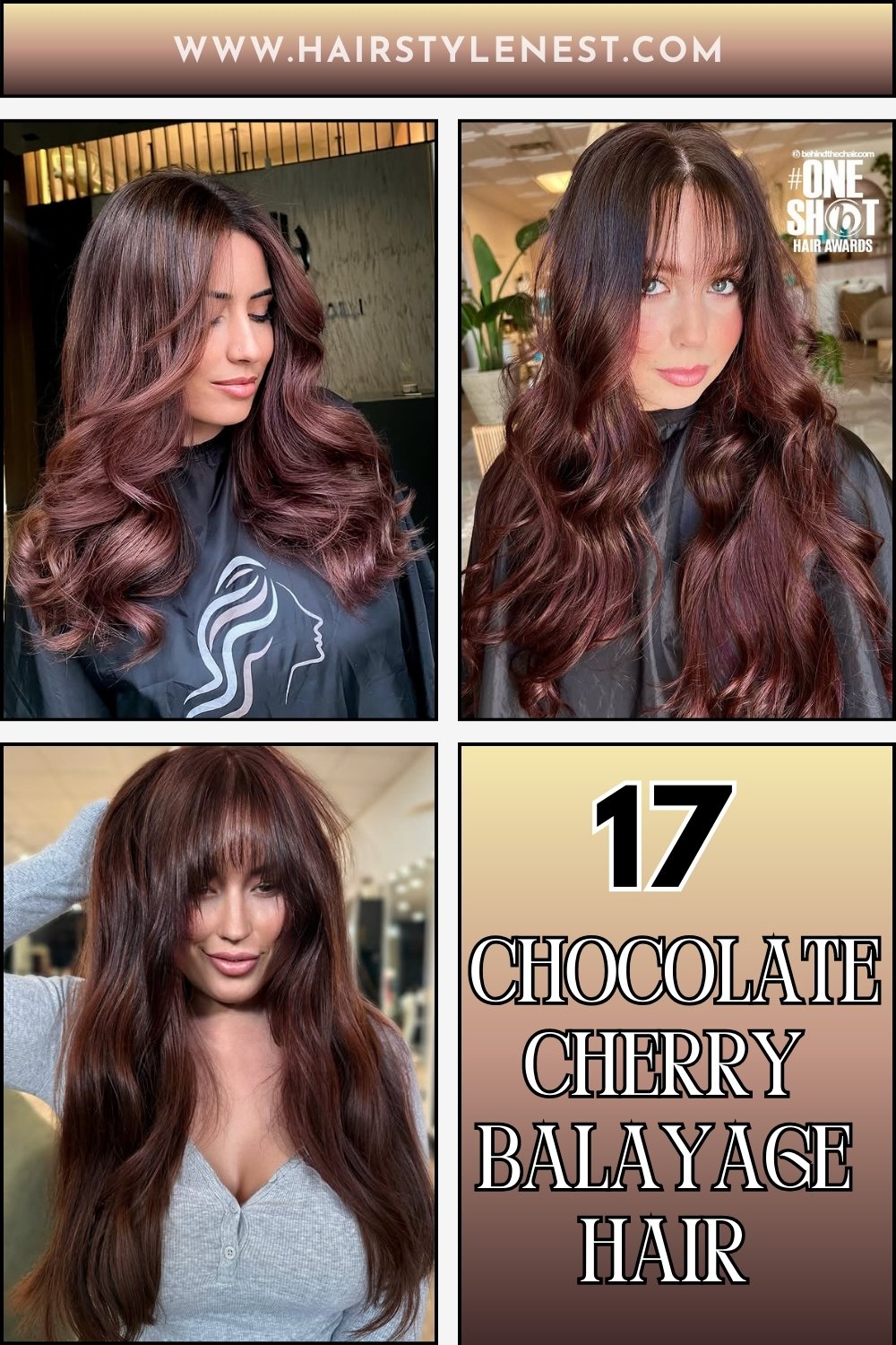 Balayage has been loved for years, and this twist keeps it fresh. The chocolate and cherry blend is timeless, chic, and flattering. These classic ideas will show you why it’s always in style.