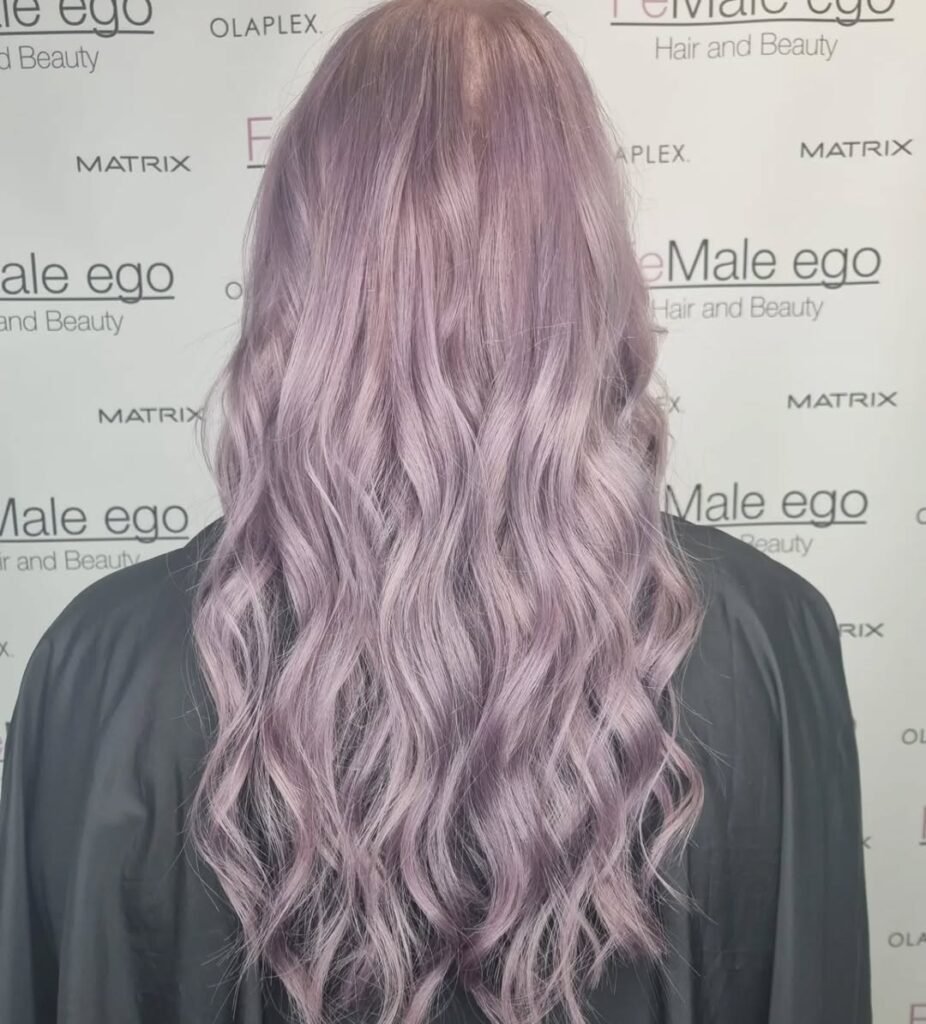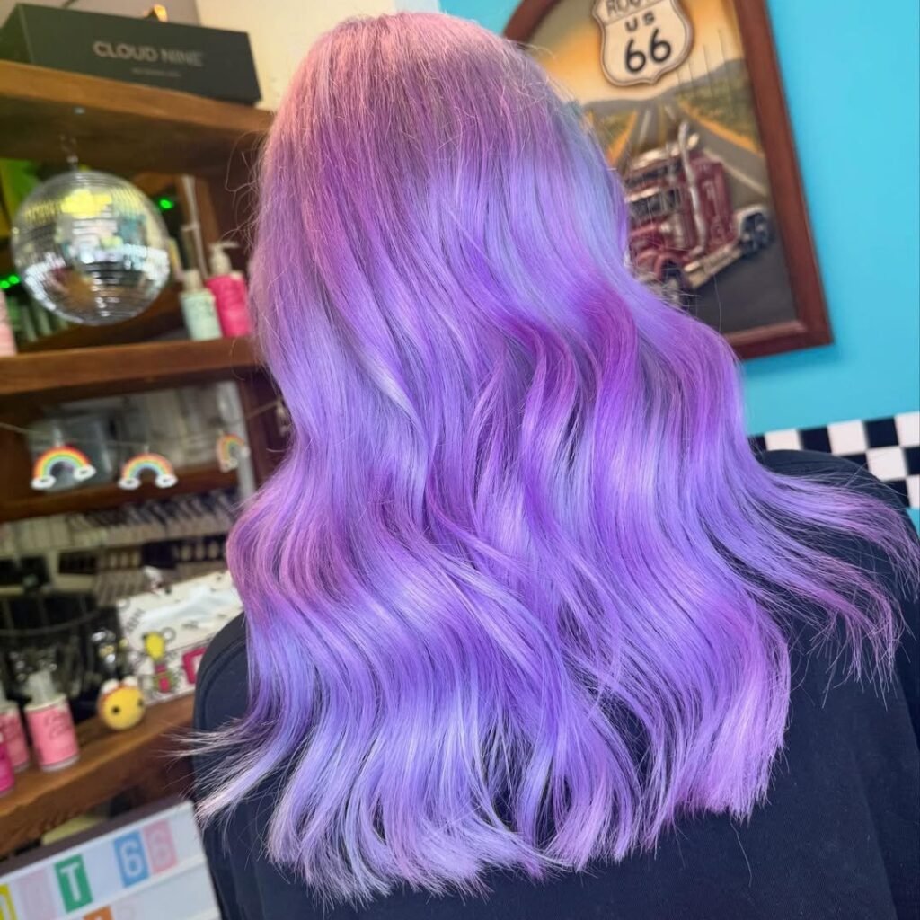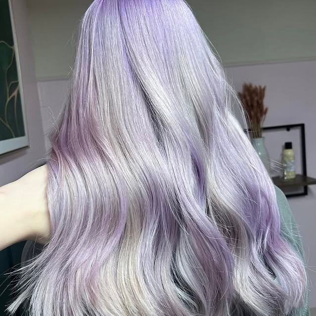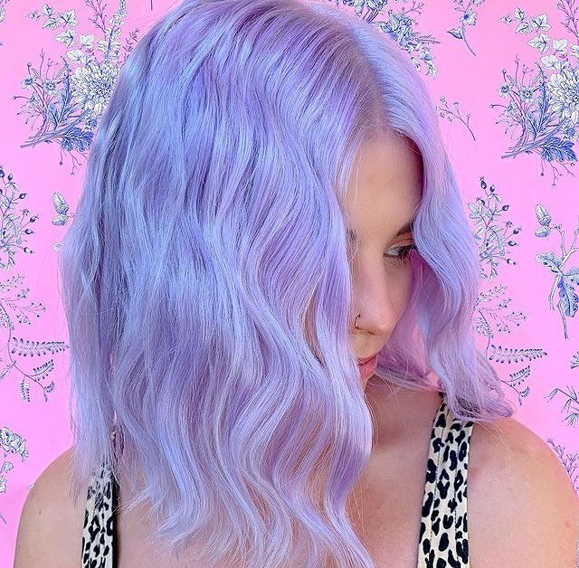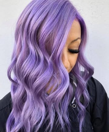Add a dreamy touch to your look with soft pastel lilac waves that flow beautifully and give off an ethereal vibe. Perfect for a feminine yet modern hairstyle with long hair.