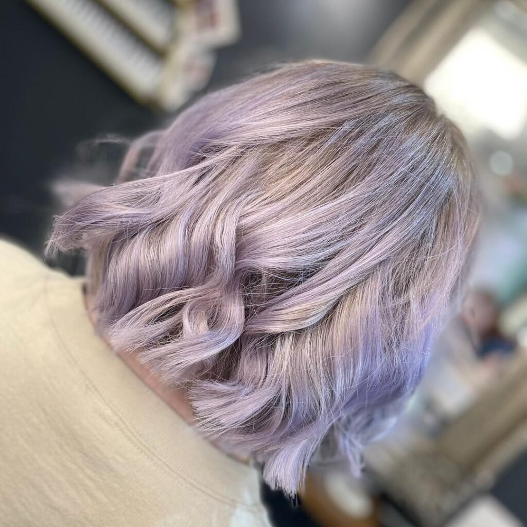 A long bob with muted lilac tones is perfect for a trendy yet understated look.