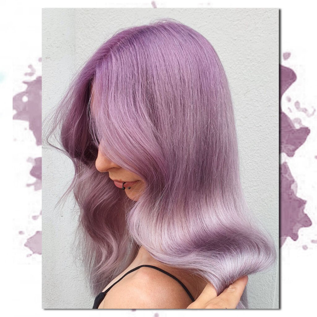 A stunning mix of lilac and silver creates a magical, fairy-like hair color with lots of shine.