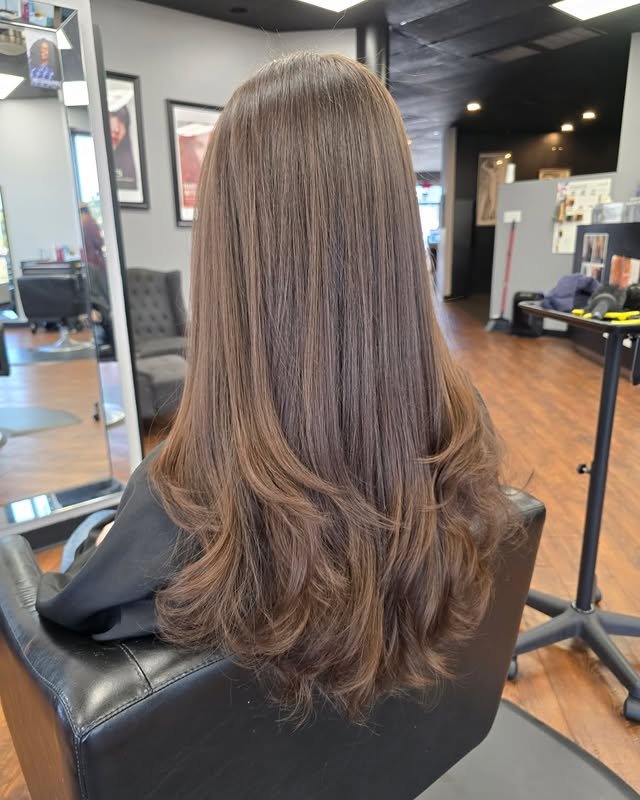 Get a stylish upgrade with long layered cuts that enhance your face shape beautifully. Perfect for a polished yet trendy everyday look.