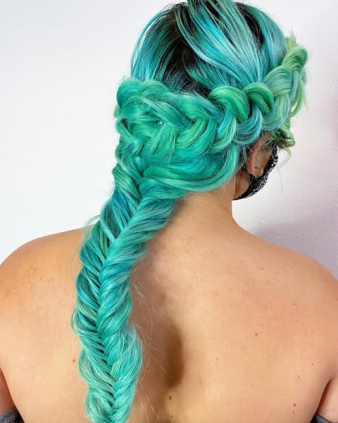 Braids make mint tones pop and add dimension to your style. A creative choice for both casual and special occasions.