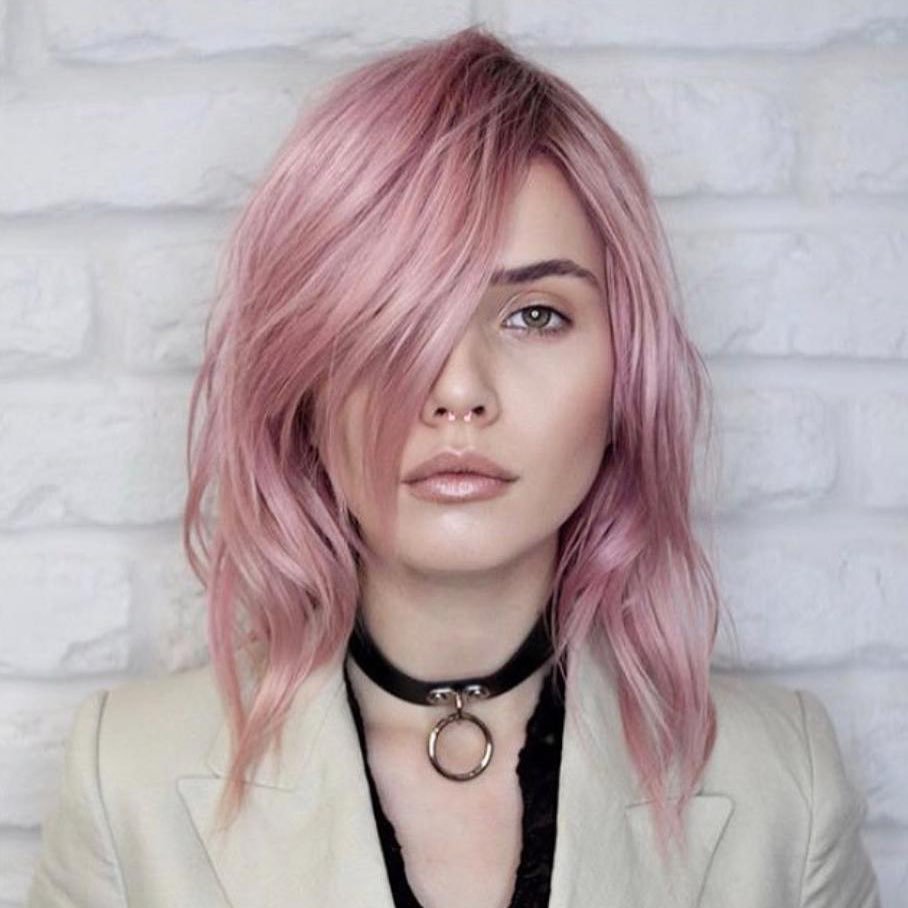 Give your pixie or bob a fun update with fresh pastel pink shades full of personality with medium hair.