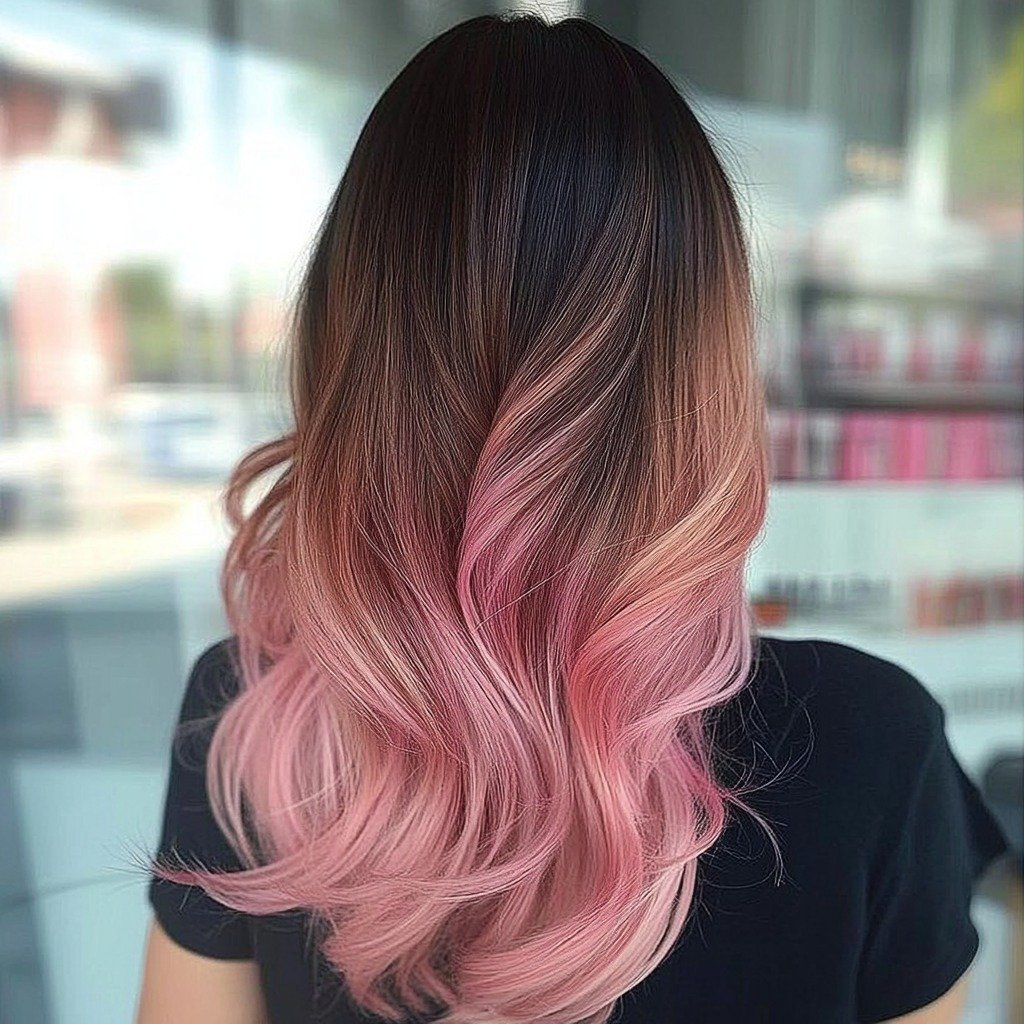 Transition from your natural color to pink with a stunning ombre that adds depth and dimension.