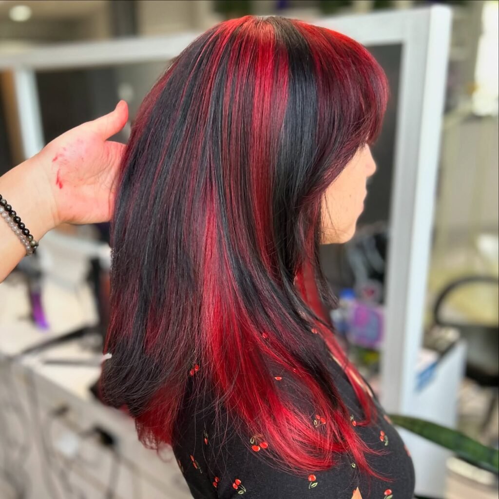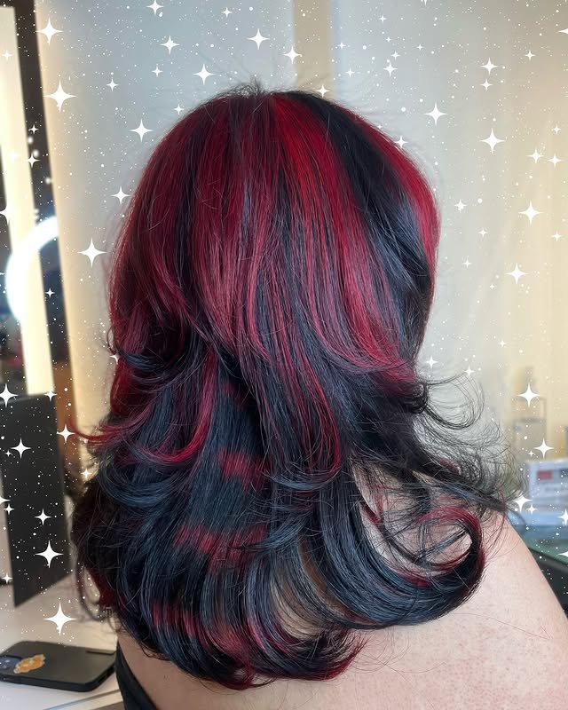 If you love playful styles, red and black hair is perfect. The fiery red pops against the sleek black for a youthful, energetic vibe. These fun ideas will brighten up your look instantly.