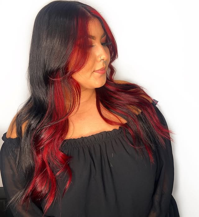 11. Radiant Red and Black Hair That Glows with Confidence