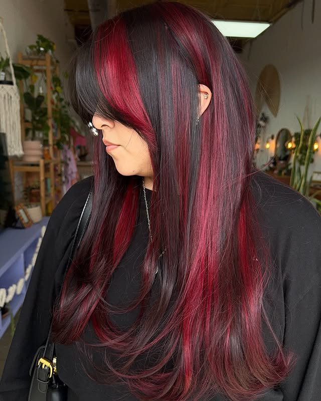 The blend of red and black instantly adds drama and depth to your hairstyle. Whether in highlights, balayage, or ombré, it’s a style that never fails to impress. These stunning ideas will inspire your next transformation.