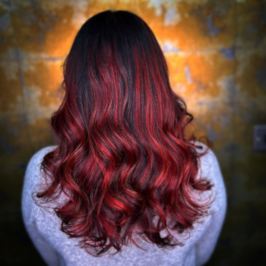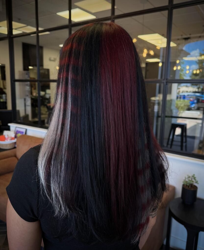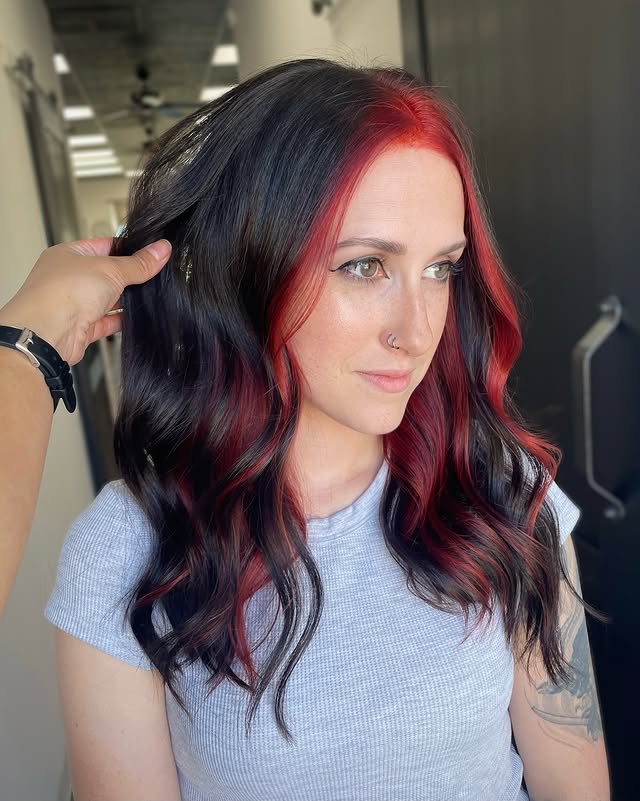 Red and black hair is the perfect combination of fiery vibrance and deep sophistication. The contrast between the rich black base and the striking red tones creates a look that’s both dramatic and stylish.