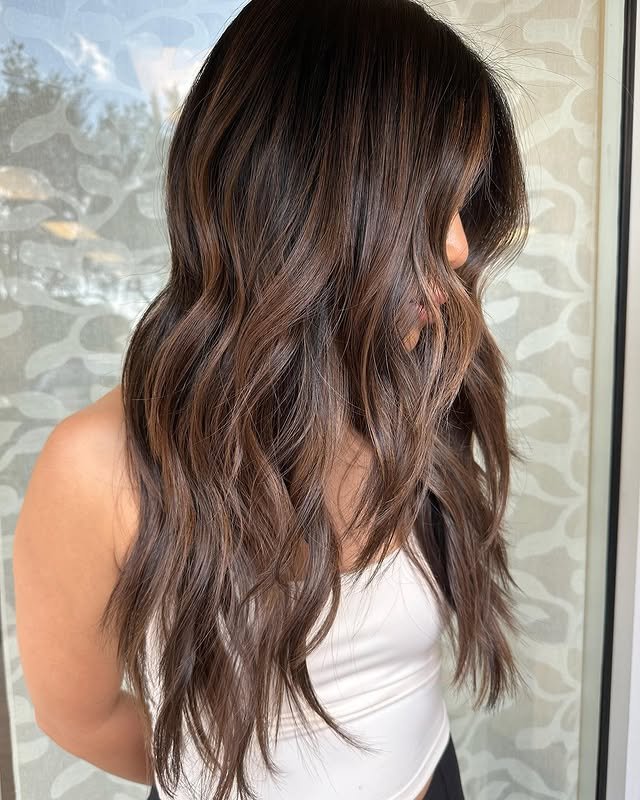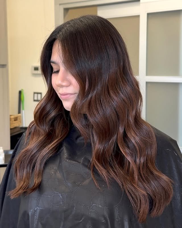 If you’re looking for a hairstyle that’s rich, dimensional, and effortlessly chic, warm brunette balayage is the perfect choice. This coloring technique blends warm brown tones with lighter, sun-kissed highlights for a natural and radiant finish.