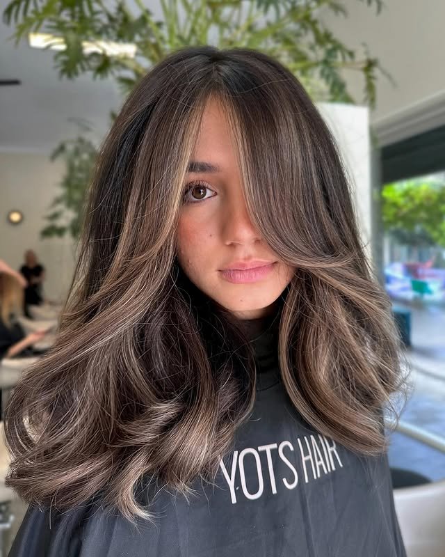Update your brunette hair with fresh balayage highlights. These modern takes add lightness and soft contrast in all the right places.