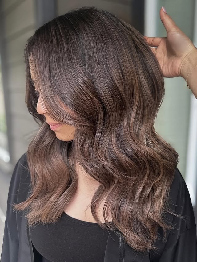 Balayage creates a lived-in, natural finish that grows out seamlessly. Warm tones bring depth and a touch of golden warmth.