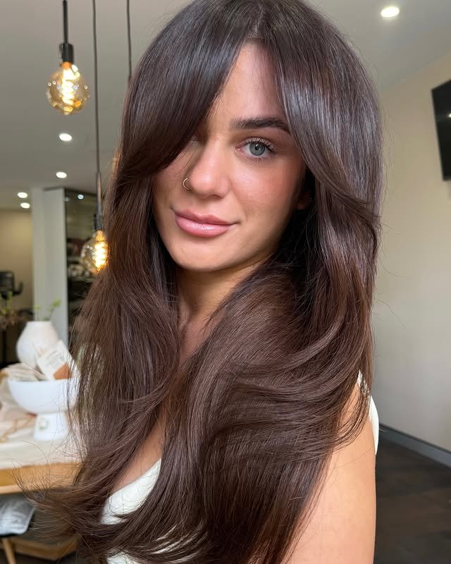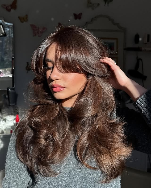 Layered cuts in warm brunette shades add depth and texture. It’s dynamic, stylish, and always flattering.