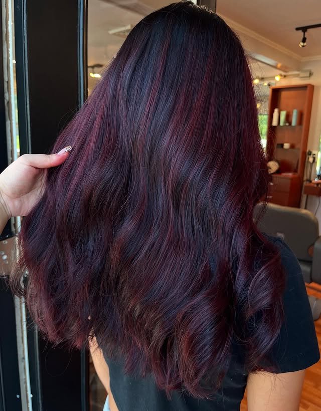 Black cherry hair color is the perfect blend of deep black tones with subtle cherry-red hues, creating a multidimensional shade that’s both elegant and edgy. This versatile color works beautifully on all hair lengths and textures, making it a favorite for those who want a dramatic yet wearable look.