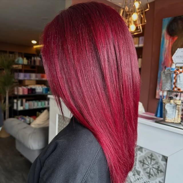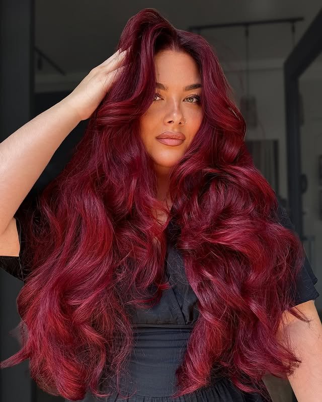 Intense ruby tones for a bold yet glamorous hair color choice.