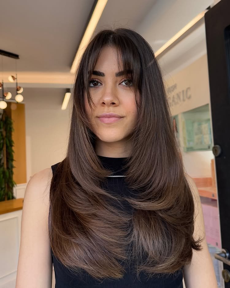 Soft and airy, these Butterfly Haircut Straight Hair inspirations bring movement to sleek locks.