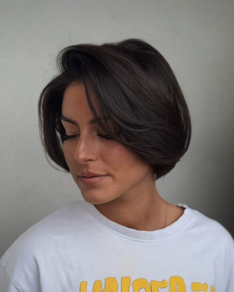 A blunt French bob haircut is sharp, bold, and undeniably stylish. Its even edges highlight the jawline and give a powerful look. This haircut is perfect for women who love strong, confident styles.