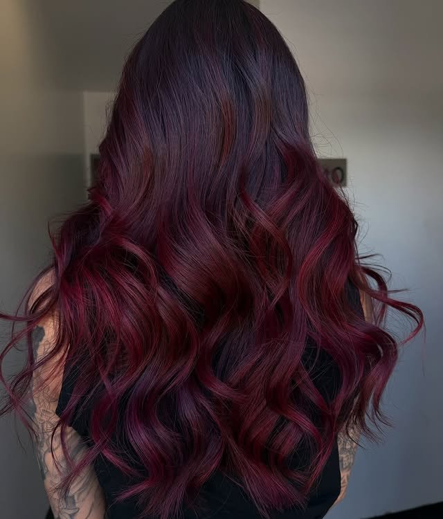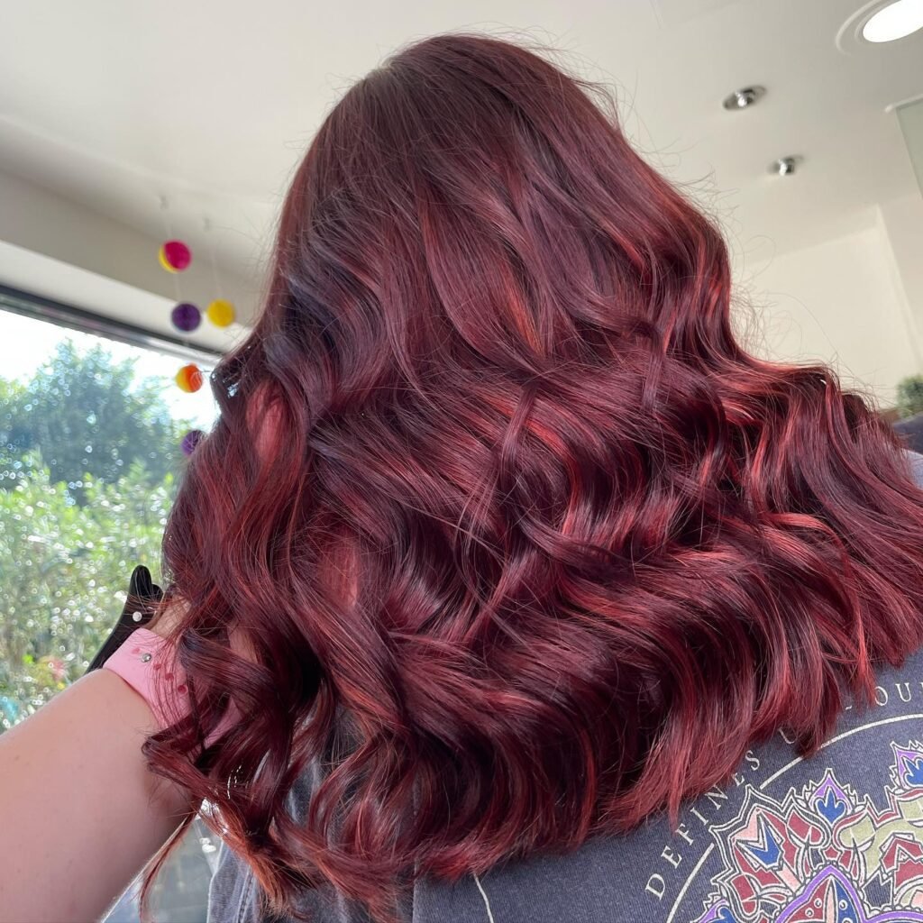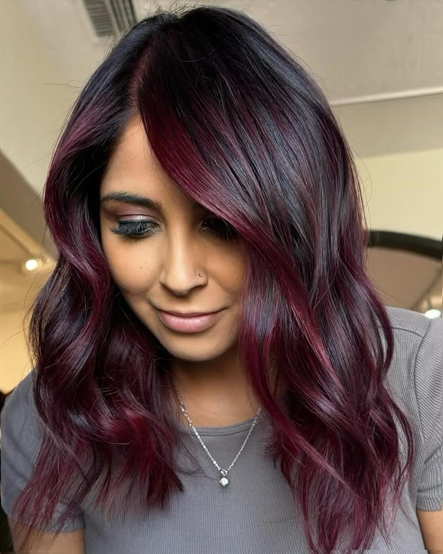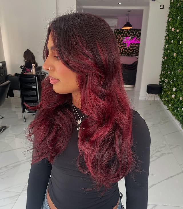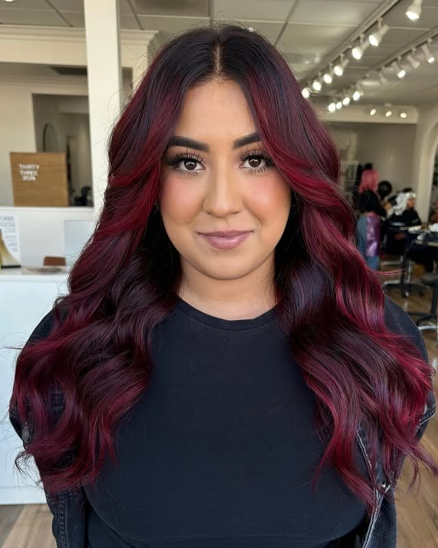 Rich burgundy balayage brings depth and shine to your strands. A perfect match for bold personalities.