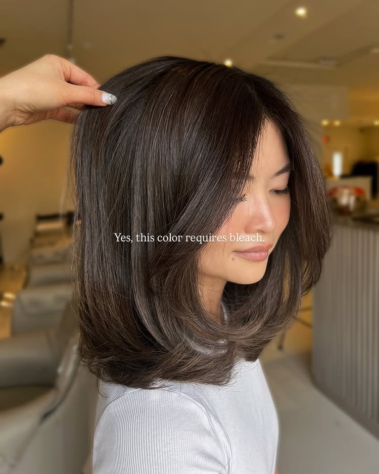 A shoulder-length cut shows off the richness of dark brown shades while keeping the look versatile and easy to style.