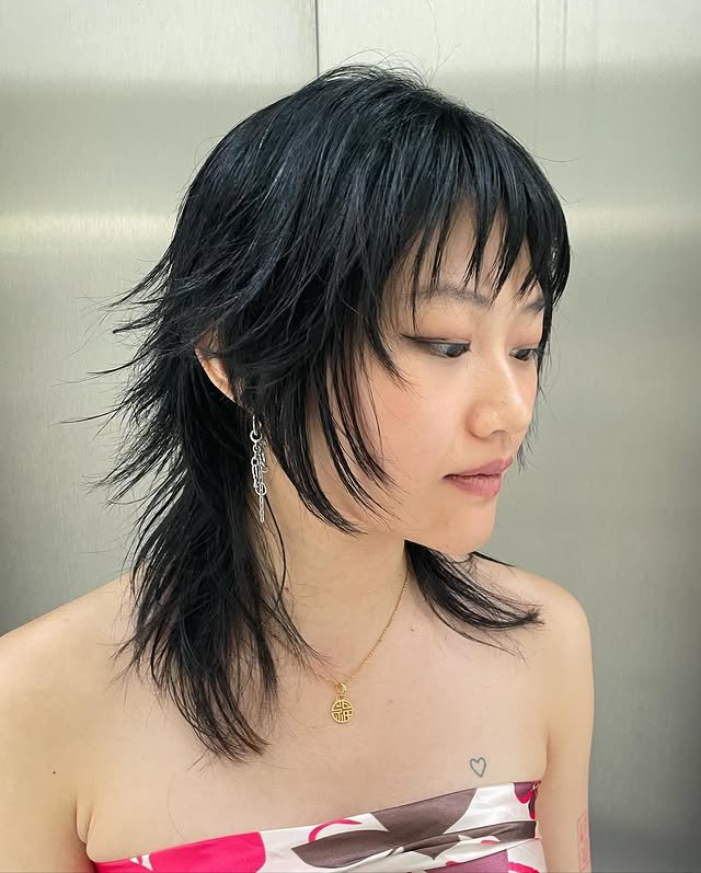 Ideal for short hair lovers, this wolf cut uses piecey layers and textured bangs to create a lively and fresh look. It’s fun, modern, and easy to maintain.