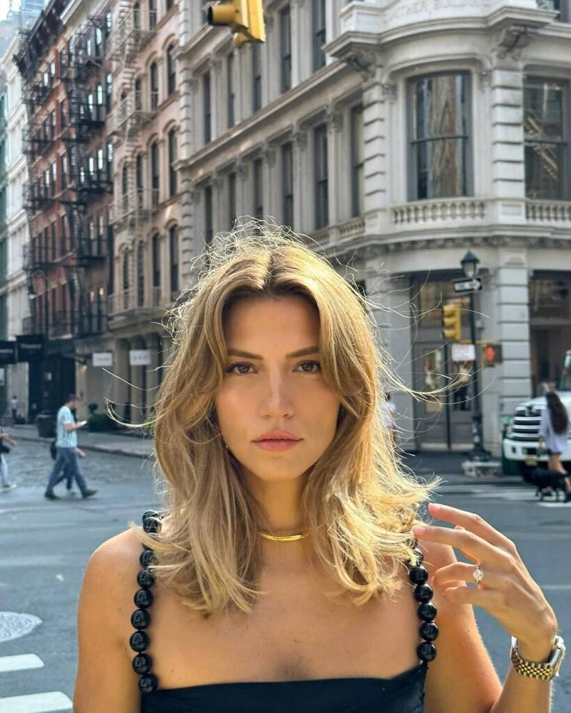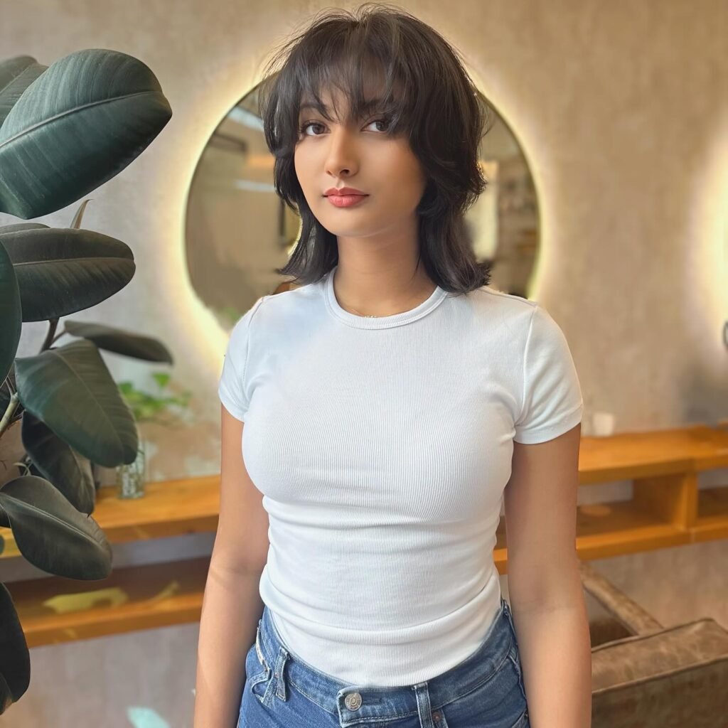 With tousled ends and a middle-parted curtain fringe, this wolf cut hair look is carefree yet stylish. It’s the go-to cut for achieving that effortlessly messy, undone aesthetic.