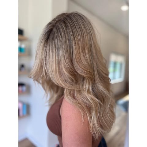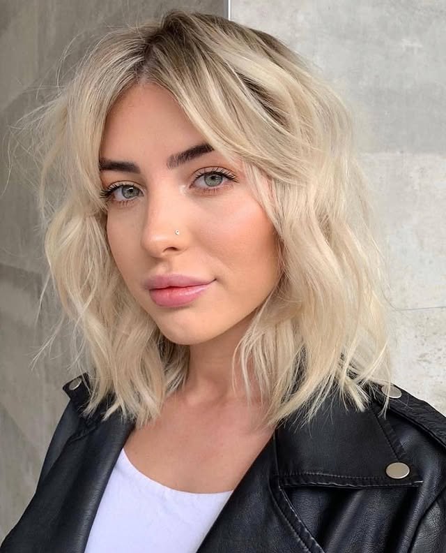 This hairstyle pairs loose, flowing waves with perfectly feathered blonde hair. The soft texture brings a gentle and romantic vibe, ideal for casual and dressed-up days alike.