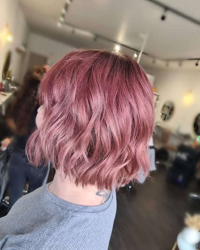 4. Dusty Rose Hair With Textured Lob Cut