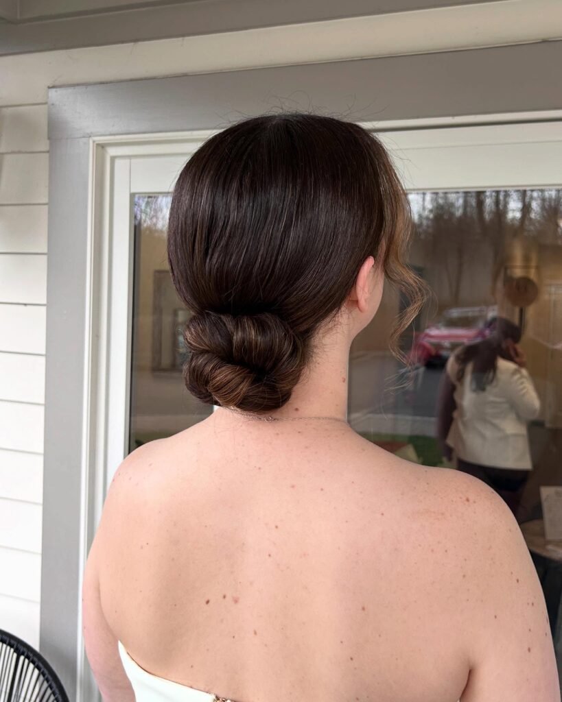 A delicate braid across the top acts as a headband and adds elegance to shoulder-length hair. It’s great for casual or formal occasions.