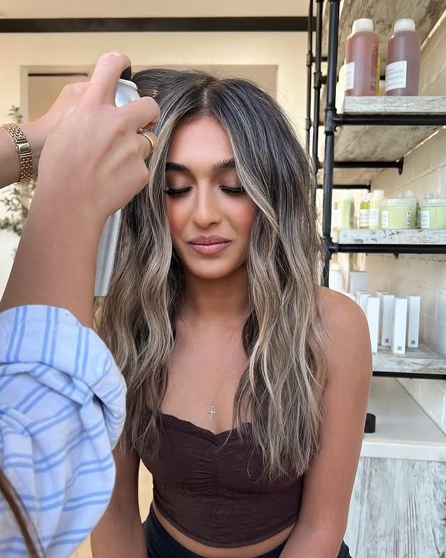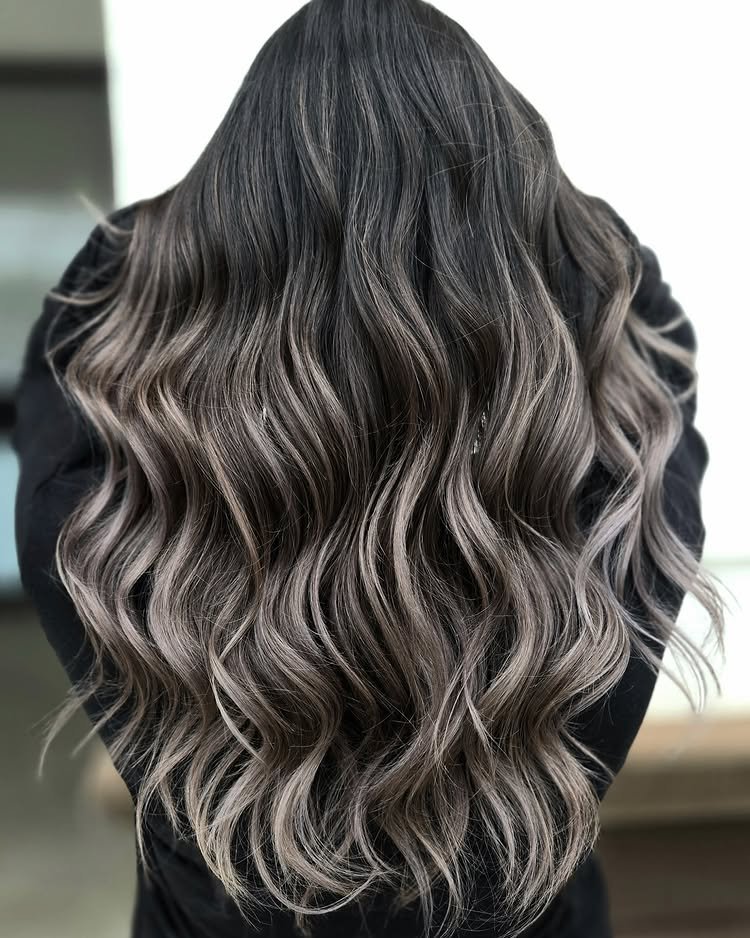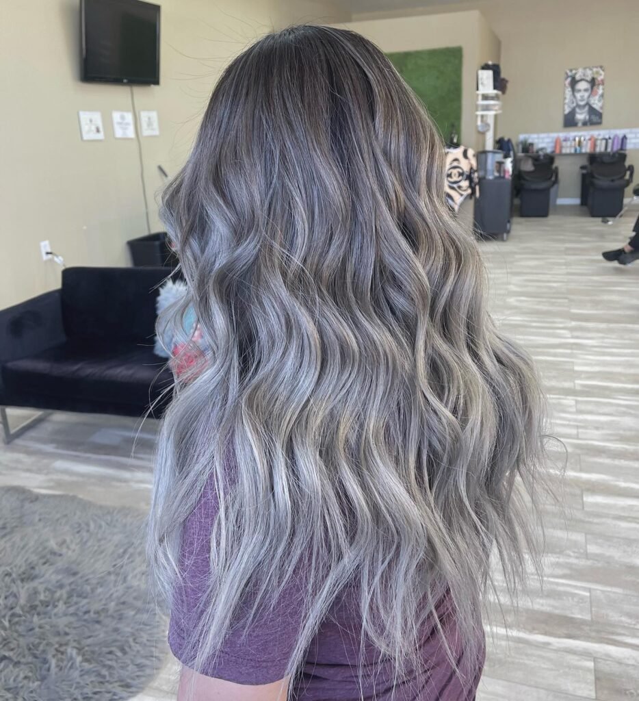 Loose, beach-inspired waves pair beautifully with delicate silver balayage, making this look effortlessly stylish and suitable for any season.