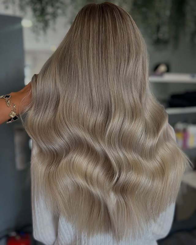 Loose, beachy waves bring life and movement to the cool tones of icy blonde hair. Perfect for both casual days and special occasions, it creates a soft, effortless glow.