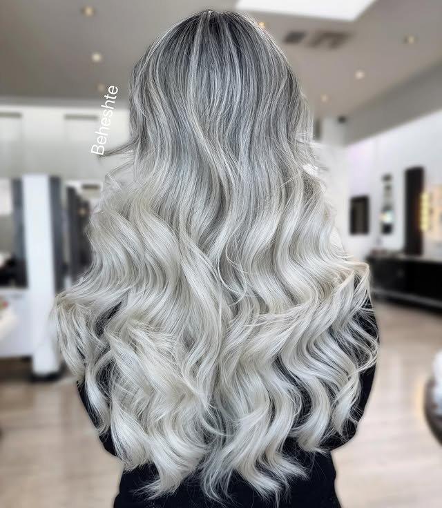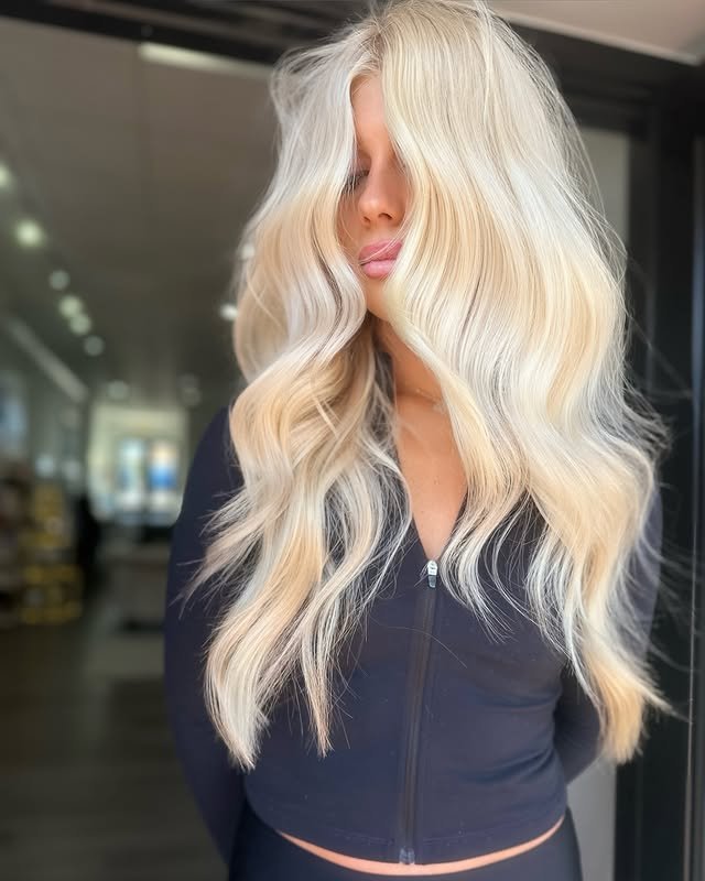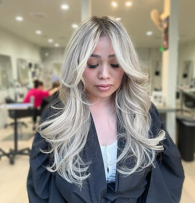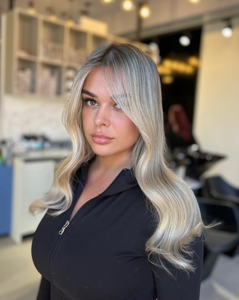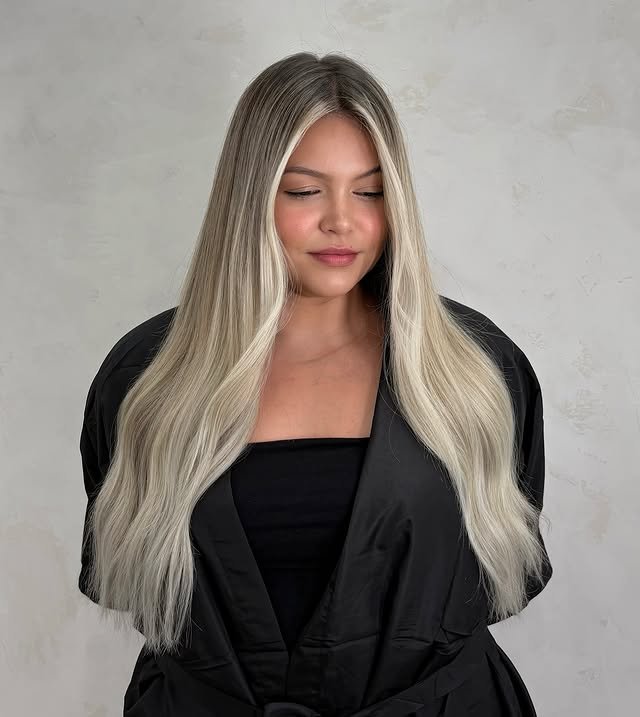 A darker root melts into icy blonde lengths, offering depth, contrast, and easy maintenance. This style adds dimension while keeping things ultra-chic.