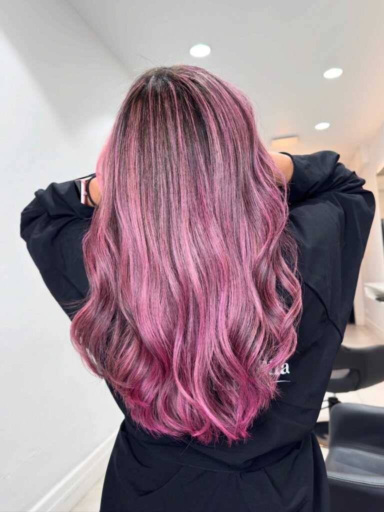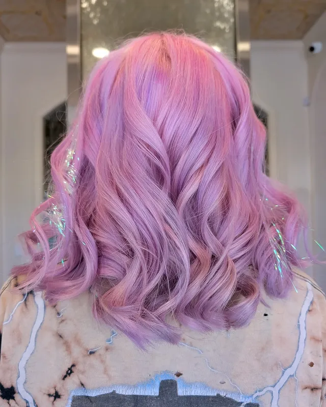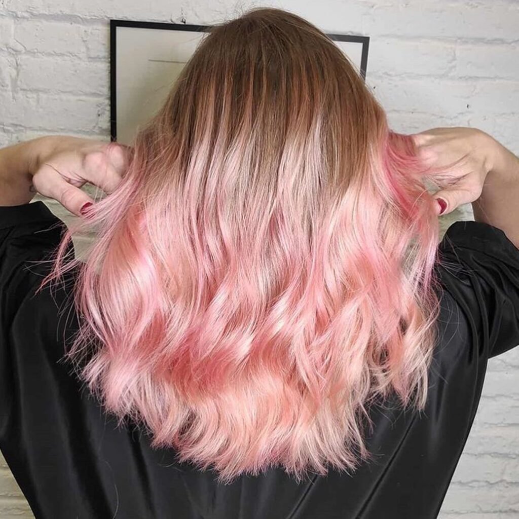 This baby pink pastel tone feels sweet and feminine, adding a soft candy-like effect to the hair that’s playful and eye-catching.